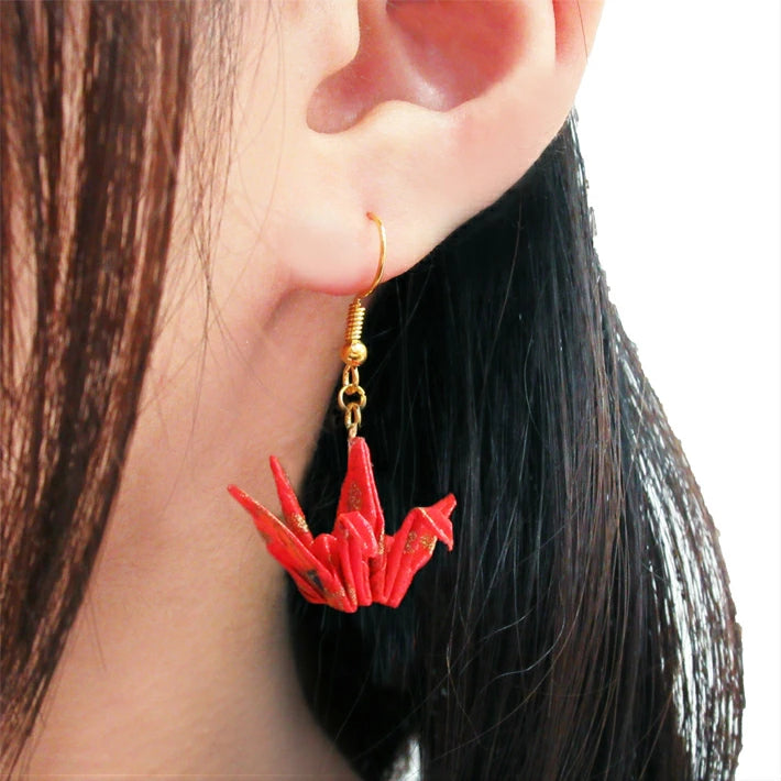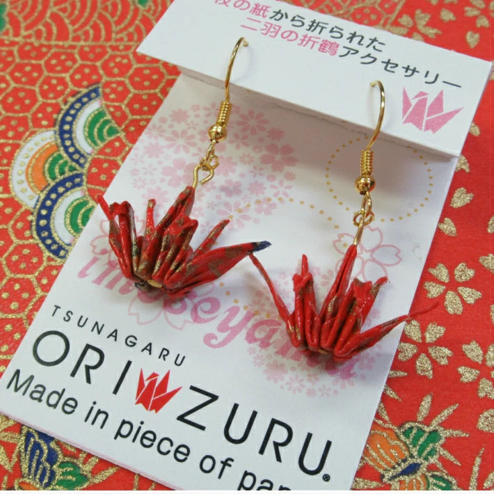 TSUNAGARUORIZURU ハンドメイドアクセサリー折鶴ピアス【妹背山・蝶赤】(妹背山 連鶴 折鶴 結婚式 アクセサリー 手作り ピアス TSUNAGARU ORIZURU 和雑貨 和小物 着物 浴衣 )